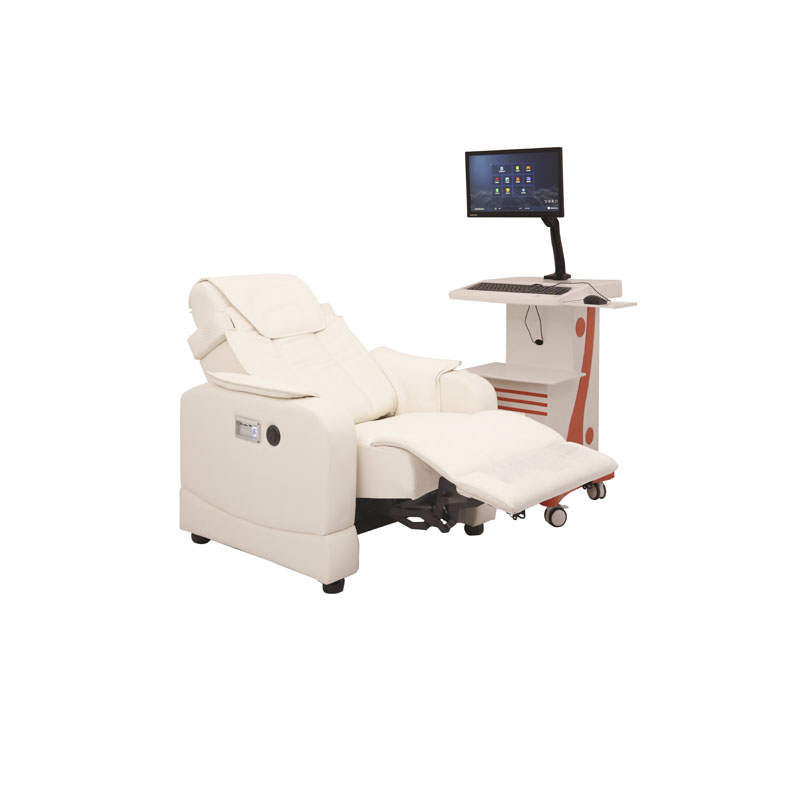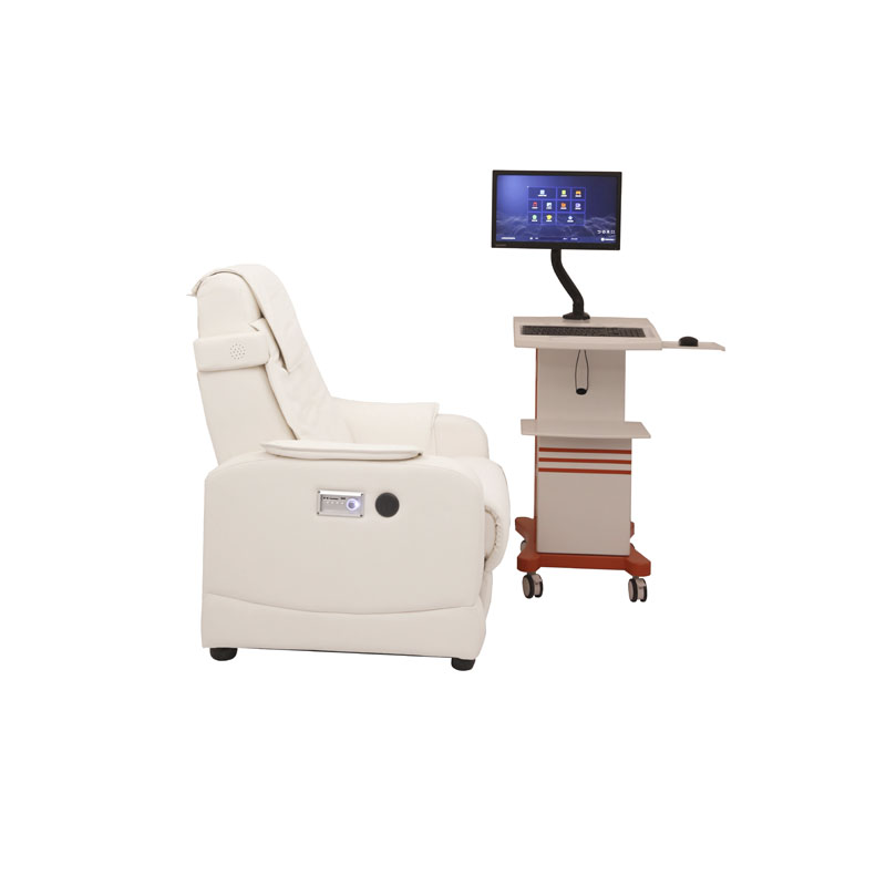 配套的专业型音乐放松椅采用实木框架,符合人体工程学,具有电动调节功能,可自由选择坐、卧、躺等姿势,自带音乐放松按摩疗法,可对背部、腰部等部位进行按摩,还可通过蓝牙与手机、平板无线链接播放心理音乐。