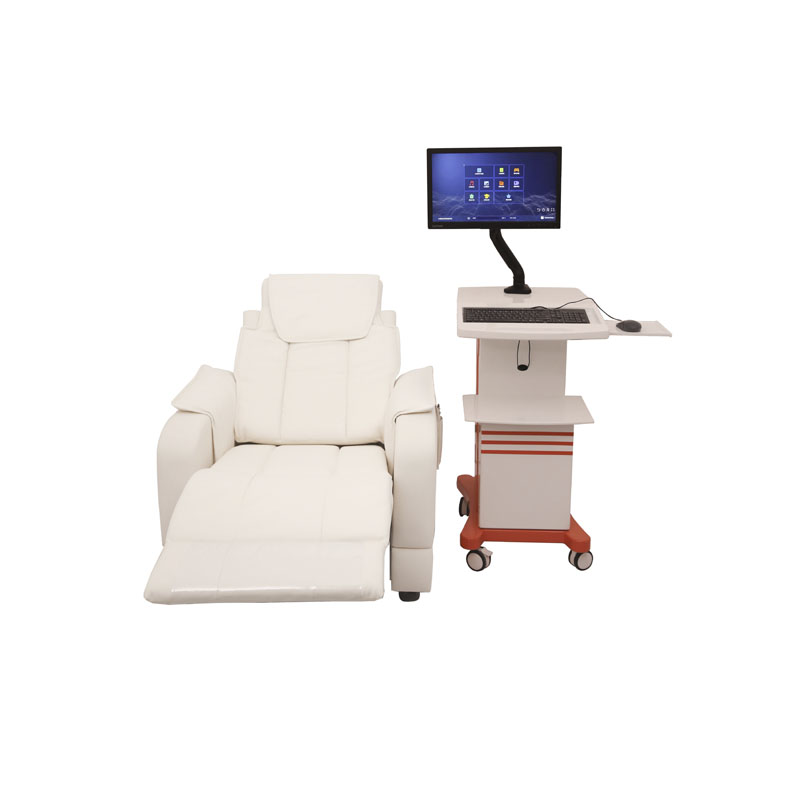 配套的专业型音乐放松椅采用实木框架,符合人体工程学,具有电动调节功能,可自由选择坐、卧、躺等姿势,自带音乐放松按摩疗法,可对背部、腰部等部位进行按摩,还可通过蓝牙与手机、平板无线链接播放心理音乐。